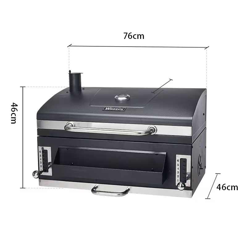 - Регулируема на височина решетка за дървени въглища - удобно регулиране на интензивността на топлината, без да се налага да боравите с решетката на грила.